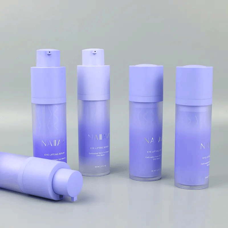 Plastic Cosmetic Airless Bottle. It has two types of printing:internal spray and external spray.