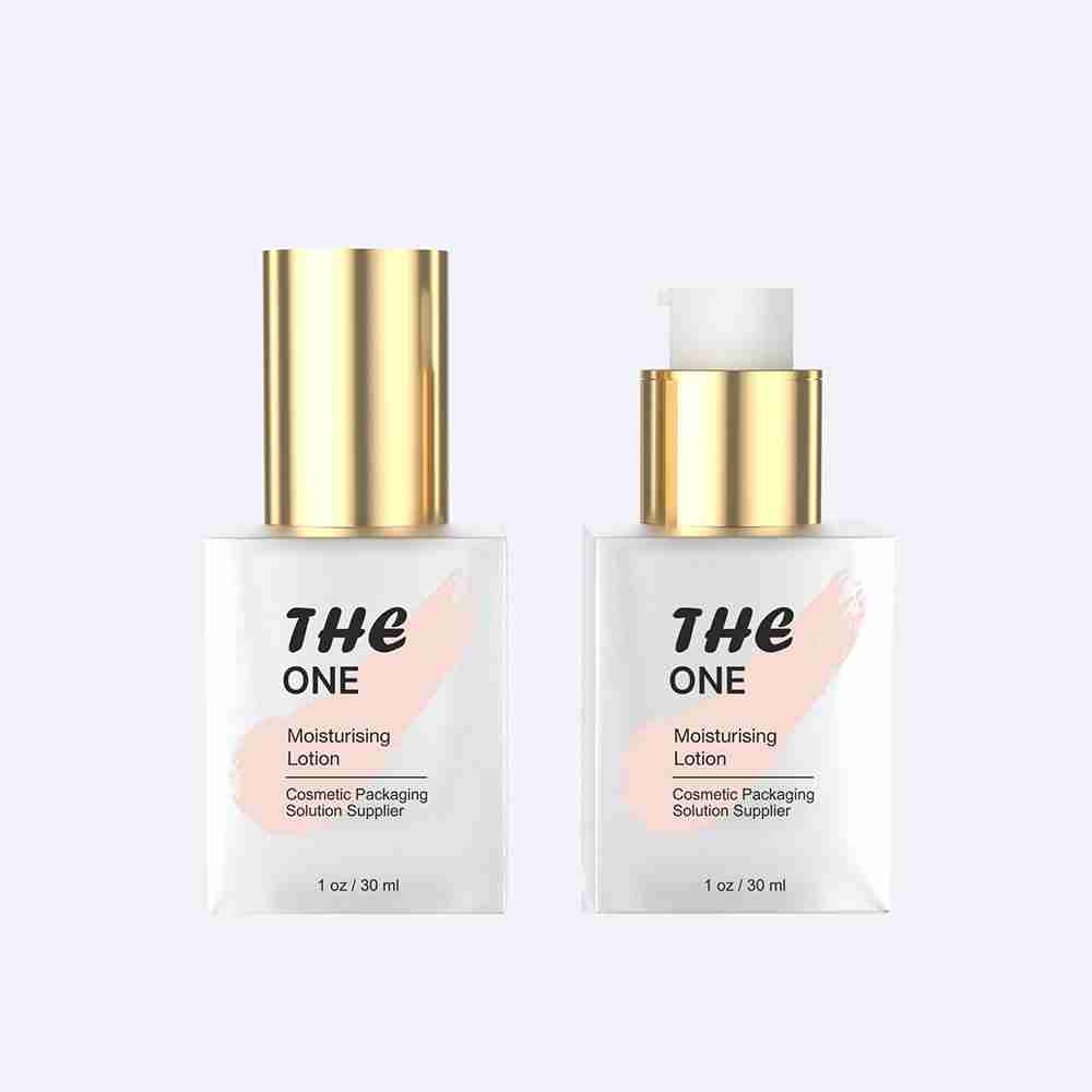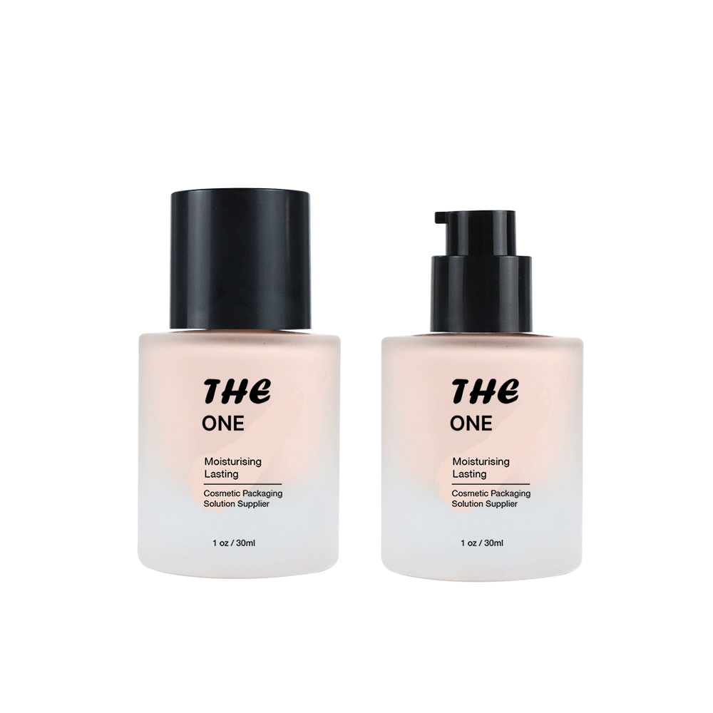30ml thick bottom foundation bottle with silver pump. It is Slim and round and has a silver pump and transparent cap.