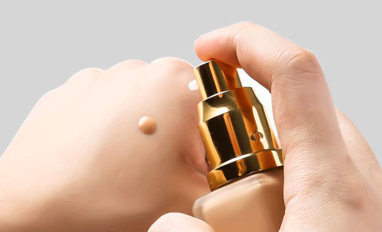 Foundation Bottle With Golden Collar. It is a special color with a collar, its color is golden. And the pump is white frosted. The cap is also Golden.