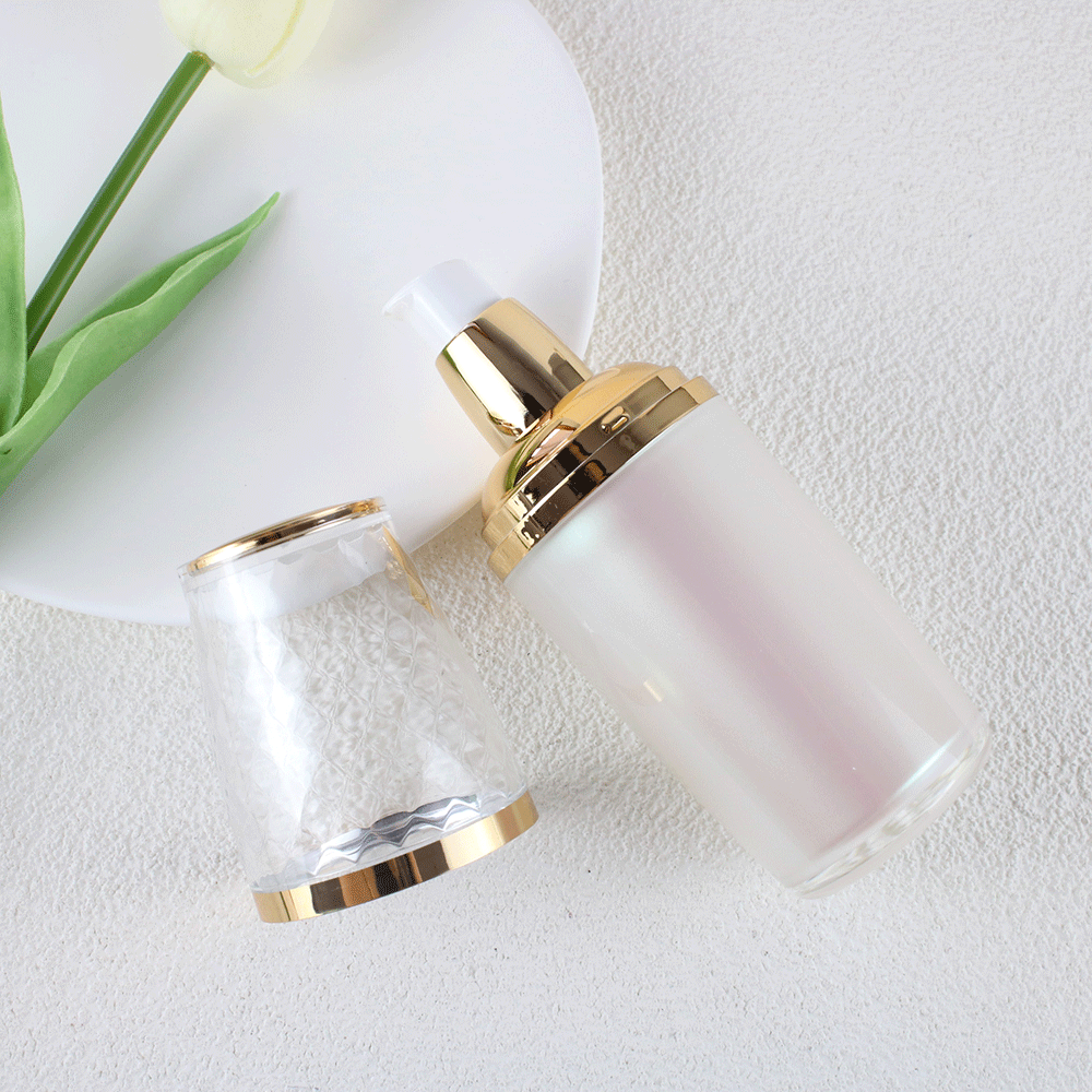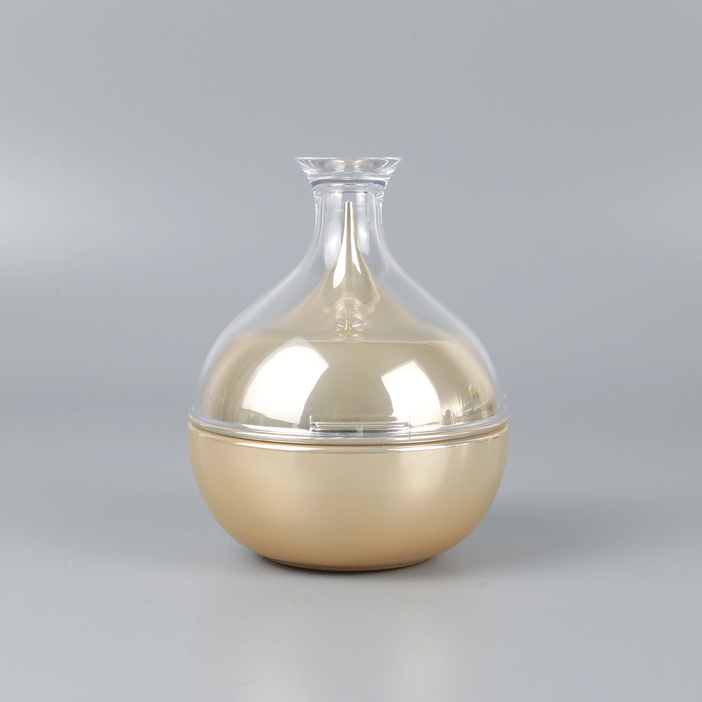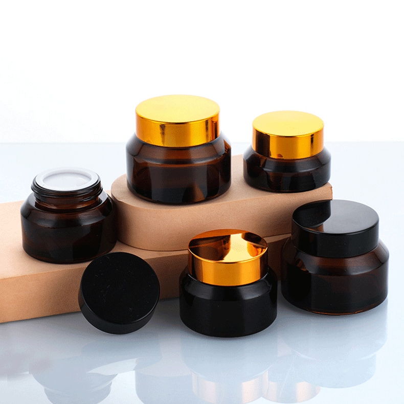 Glass Cream Jar WIth Golden Cap. It is a special shape for Jar. The shape is also an irregular shape that looks expensive and atmospheric.