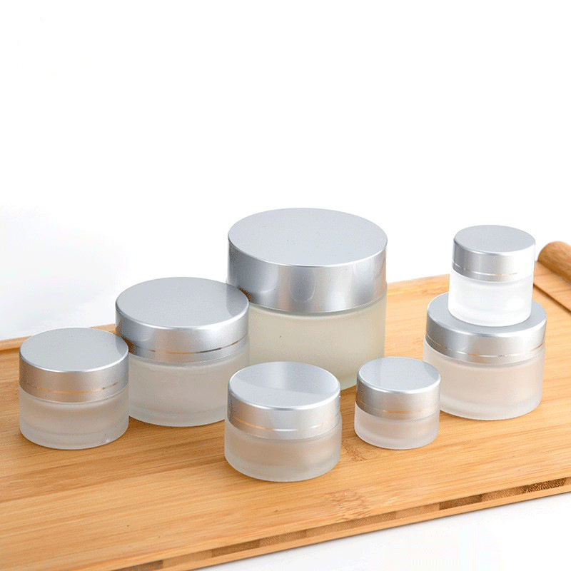 Glass Cream Jar With Silver Cap. The Jar is transparent with frosted. The cap is a UV electroplate with a silver color and can be changed to golden.