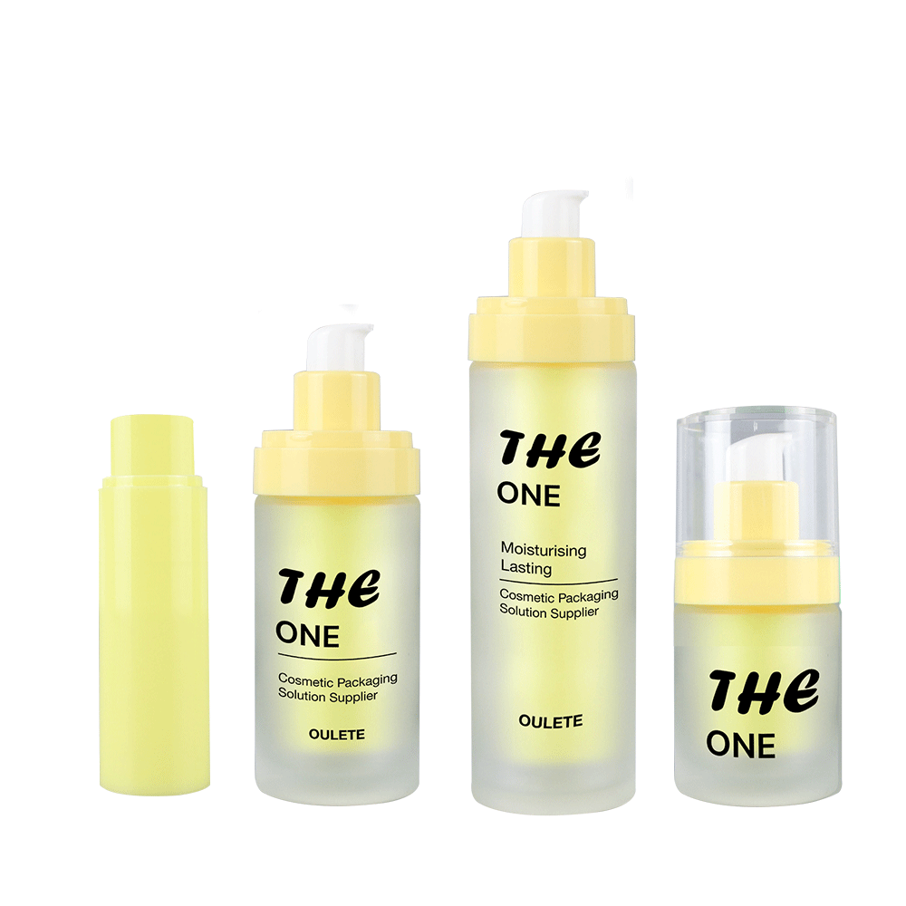 Refillable Skincare Packaging With Yellow Color. The outer of the bottle is transparent with frosted.