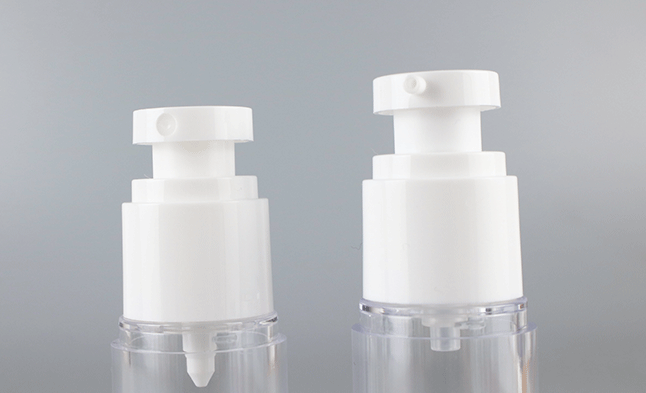 2. One of the pumps has the tip of the spray head protruding.